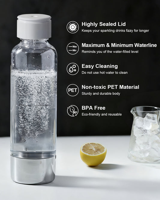 MOKKOM Soda Maker Bottle, 1L Reusable Sparkling Water Bottles, BPA Free PET Carbonating Bottles, Replacement Bottle Compatible Sparkling Water Maker